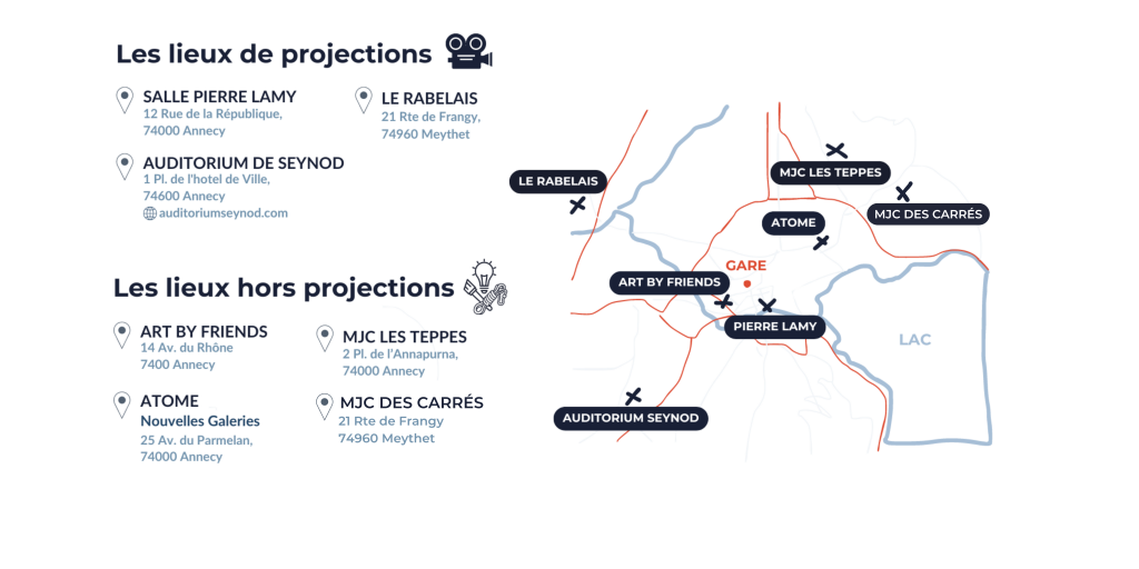 Des places pour les projections ou le Pass cinéma sont disponibles à la vente à l’Office du tourisme d’Annecy.